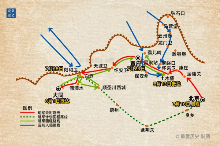 ▲土木之变行军阶梯图。图源:最爱历史制图