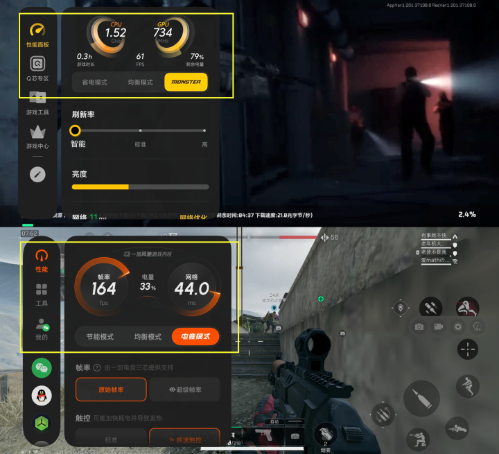 算作游戏定位的手机,二者在游戏友好度方面但是下了不少的功夫,功能和易用性上亦然进出无几。一加Ace6T游戏助手依托电竞三芯与风驰游戏内核,灵犀触控芯提供最高3200Hz采样率,电竞会聚芯G2让会聚更结识,已适配《和平精英》165帧,主打触控精确与对局效率。iQOONeo11游戏魔盒依靠电竞芯Q2与超核引擎,设Q芯专区维持2K超分、144FPS超帧并发,侧重画质增强与极致性能。