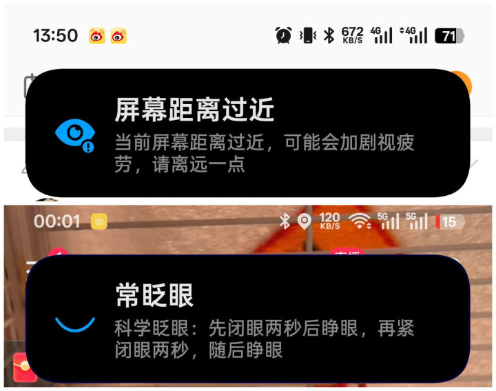 在护眼方面的不同还有一加Ace6T的寂寞AI护眼提醒,中枢监测近距离用眼和永劫刻忘眨眼,及时弹窗教导还教科学眨眼,搭配明眸护眼算法,同步提醒救援用眼风俗,主打一个贴心。iQOONeo11若是也有就好了。