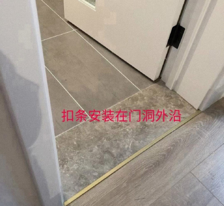 ③当门口成立有扣条时,若最初装置地板,便难以保证扣条有时精确地定位至门扇正下方。如斯一来,待后续门装置完成后,关门之际扣条可能会暴露在外,从而对举座好意思不雅度形成不利影响。